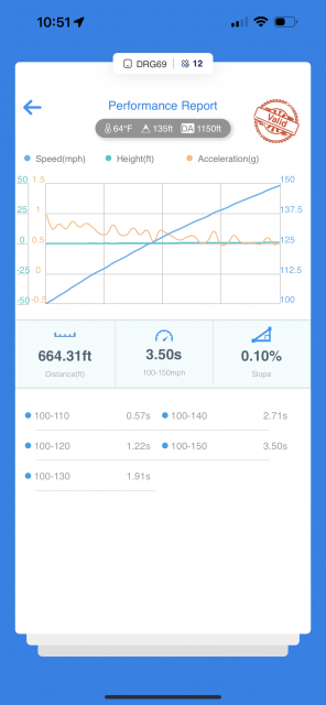 I don’t do any street racing. Last time I tried was something terrible like mid 4’s with all kinds of power pulled out and spinning. I attempted a 100-150 on the street with some power but kept spinning. I think best on the street for that was like 3.75.