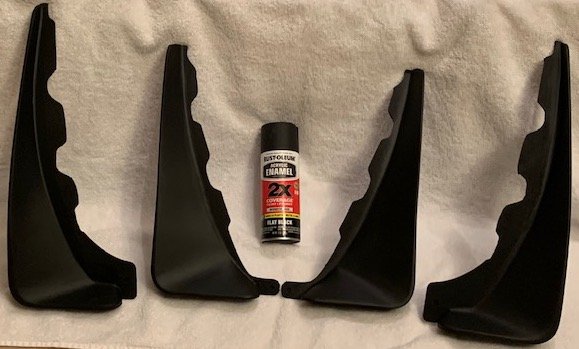 Made new mud flaps for the car. The paint show in the photo is a very close match to the spoiler and matte black trim pieces.